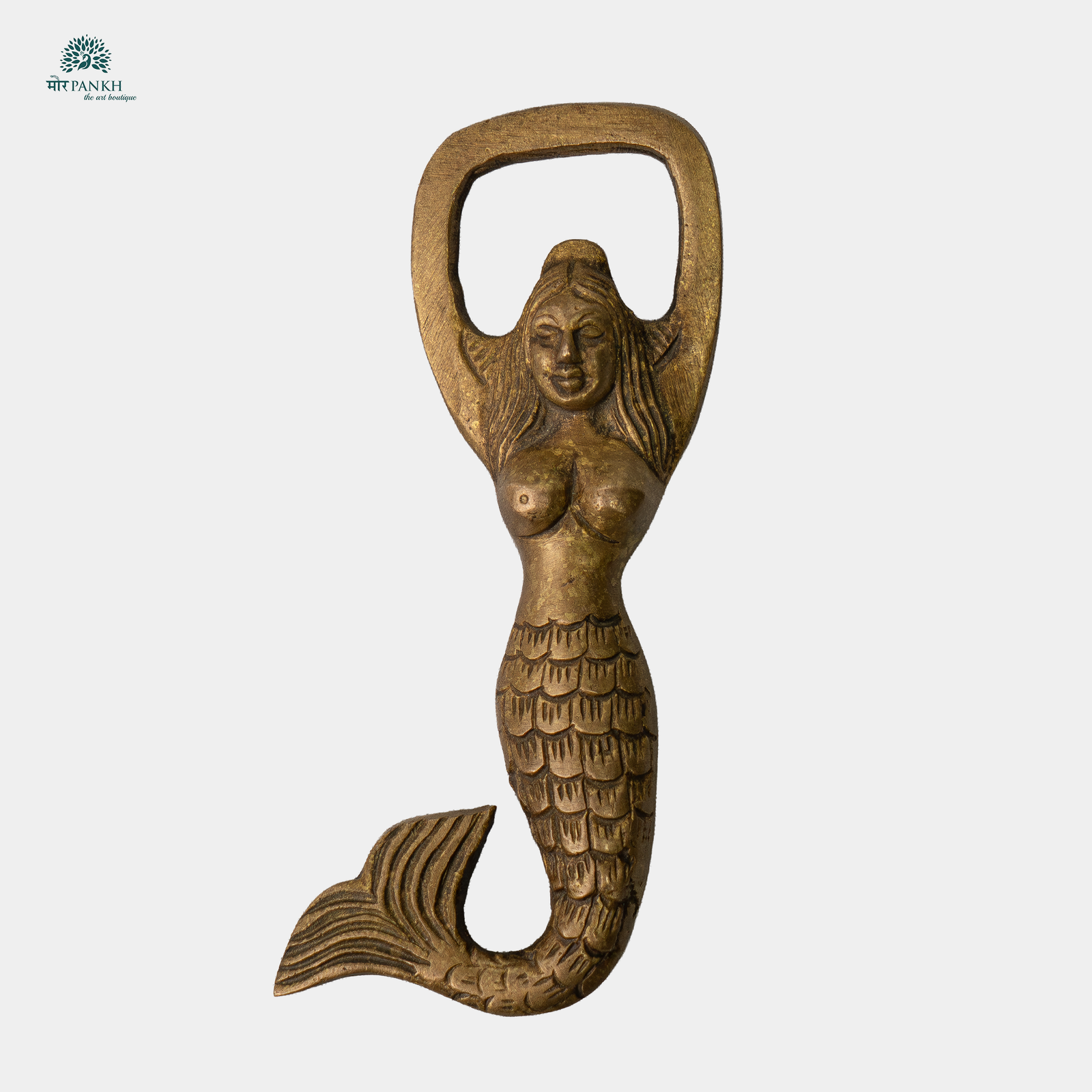This handcrafted brass bottle opener, designed in the shape of a mermaid, blends functionality with artistic charm. Its intricate detailing and antique finish make it a unique addition to your barware collection.Sturdy and stylish, this piece is perfect for everyday use or as a conversation starter at gatherings. A thoughtful gift for art collectors and lovers of nautical decor.