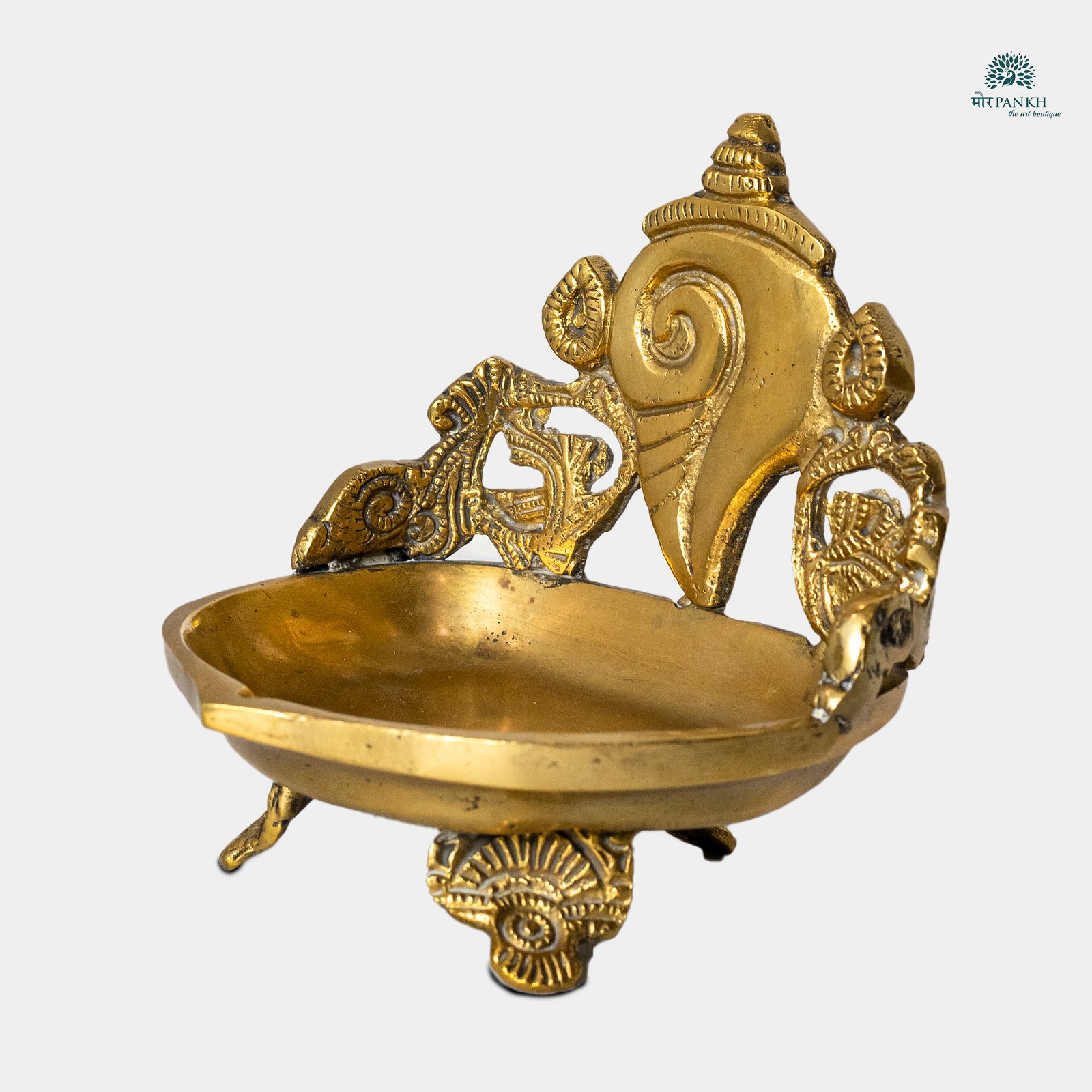 Add a touch of divine elegance to your décor with this Handcrafted Brass Shankh Urli Bowl. Adorned with an intricate conch design and floral motifs, this urli is perfect for filling with water, petals, or floating candles during festive occasions. The sturdy brass legs offer stability while enhancing its traditional charm. Each piece is individually handcrafted, ensuring a unique artistic character that reflects India’s rich cultural heritage. Bring sacred beauty to your space with Morpankh’s timeless urli collection.