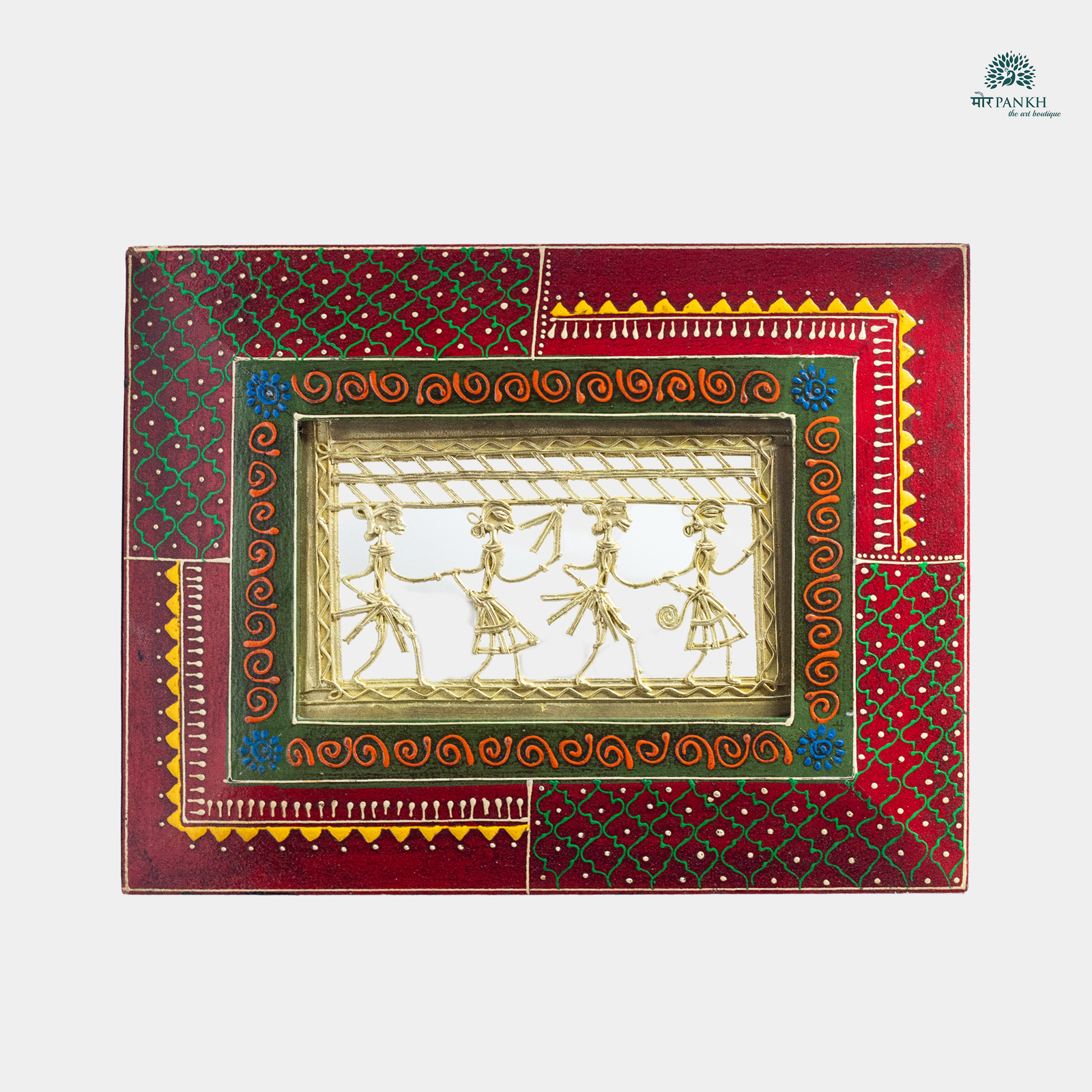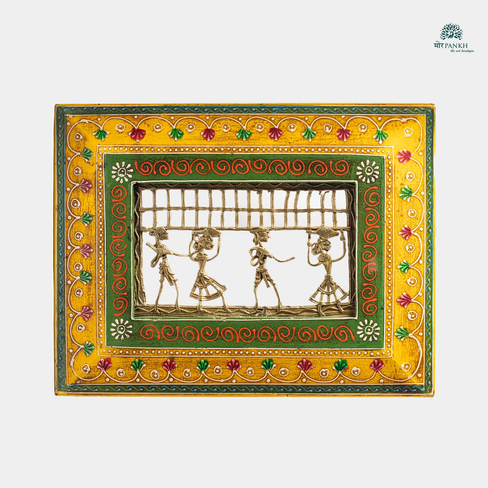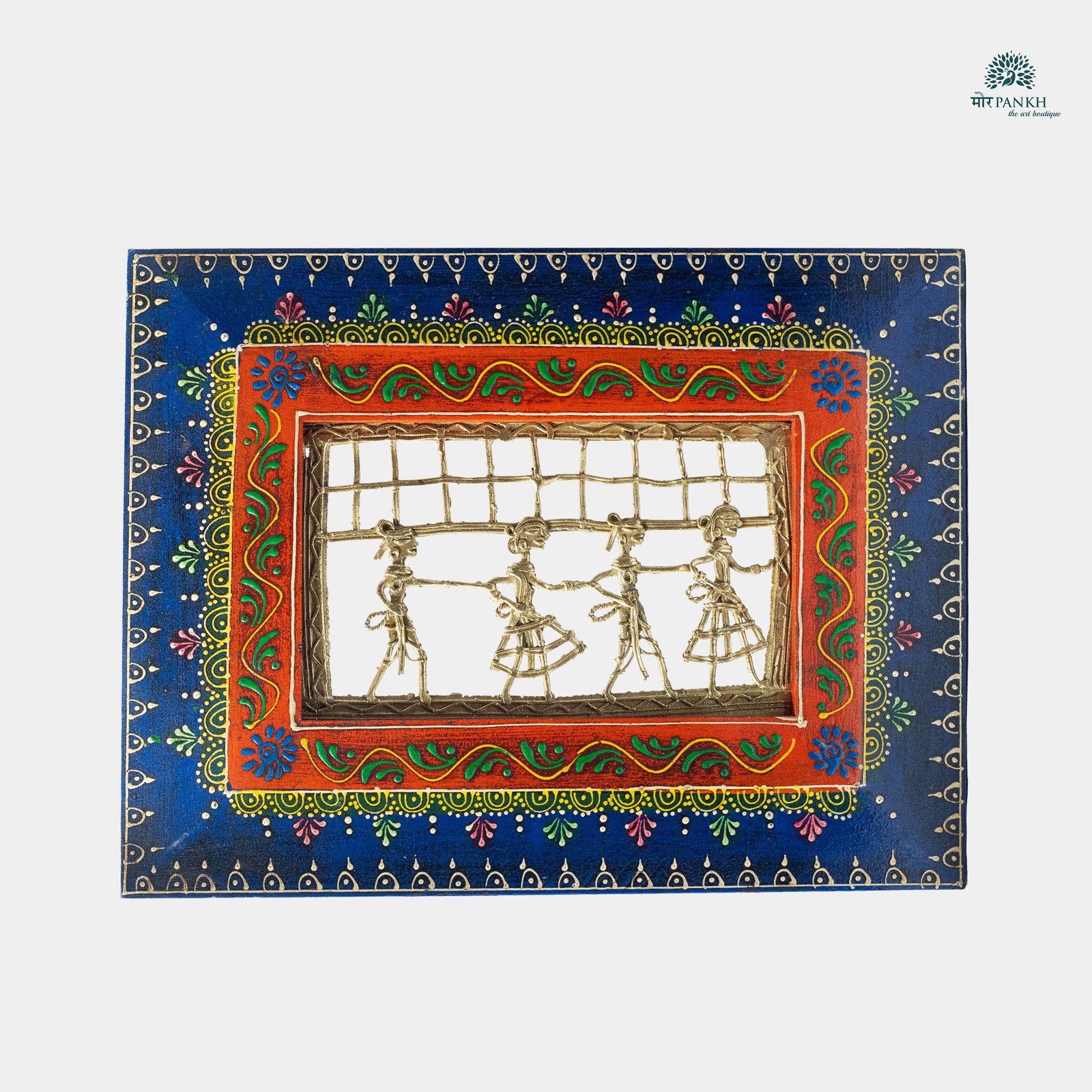 Handpainted Decorative Frame with Dhokra Brass Artwork – Wall Décor -10×13 (Blue, O.Gr. Red, Yellow)