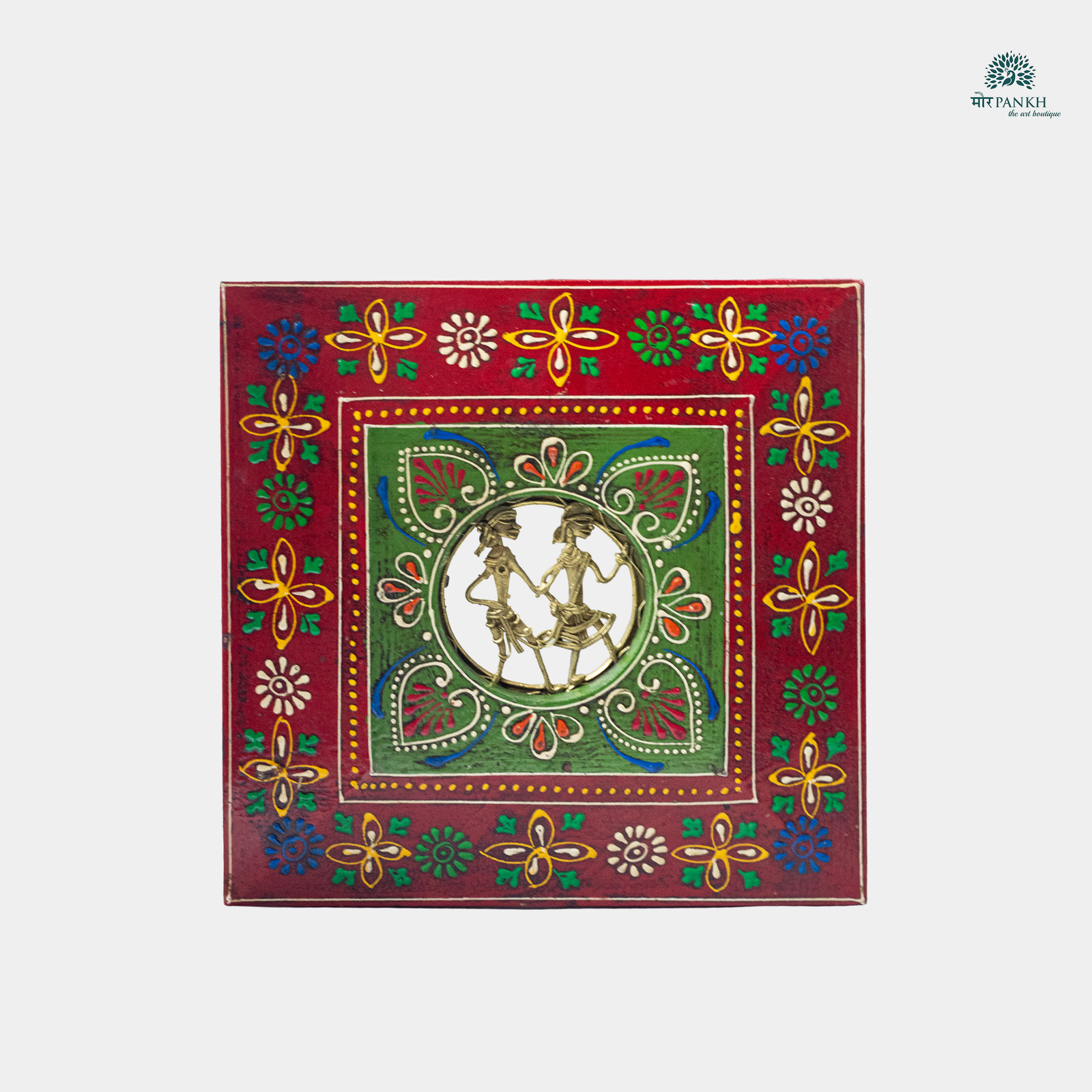 Handpainted Decorative Frame with Dhokra Brass Artwork – Wall Décor- 8×8 (Blue,Red,Orange)
