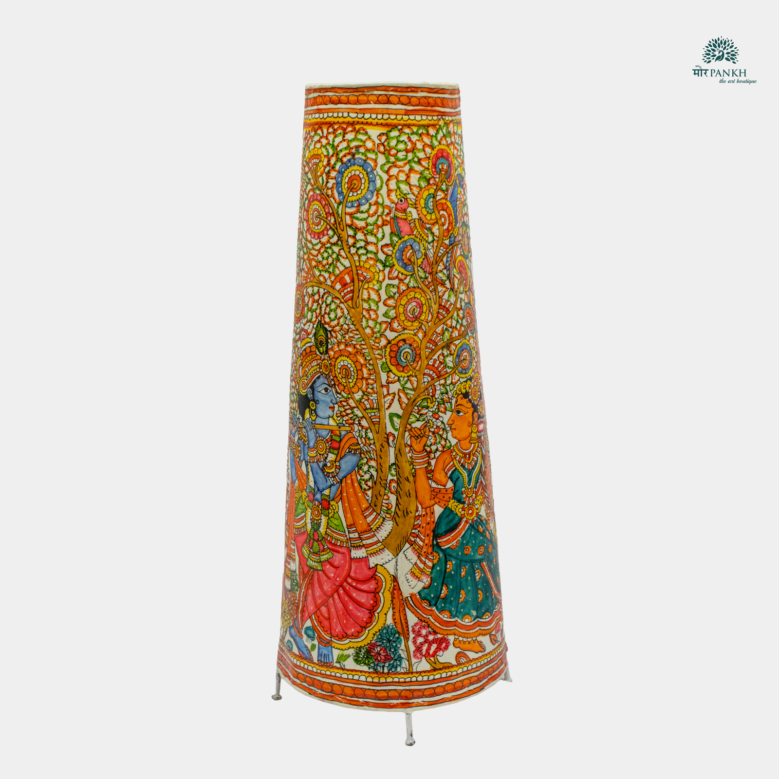 Crafted by skilled artisans, this handpainted leather lamp is a timeless celebration of traditional Indian craftsmanship. Made from natural leather and hand-stretched over a structured frame, each piece is adorned with intricate motifs using age-old painting techniques. The detailed artwork—ranging from folk to floral to geometric—glows beautifully when lit, adding warmth and cultural richness to any interior. Ideal for living rooms, hallways, or bedside nooks, this lamp is both a functional light source and a piece of art. Its blend of earthy materials and handcrafted detail makes it a striking accent in both modern and ethnic spaces.